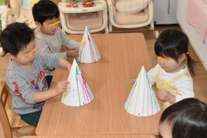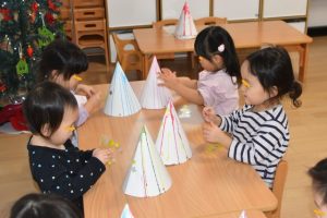 今日はももぐみ・すずらんぐみ・ちゅうりっぷぐみさんは室内でおままごとやクリスマス製作などを楽しみました(*^-^*)おままごとでは色々な食材を使い、ごちそうを沢山作ってくれましたよ🎵