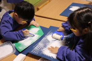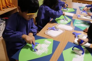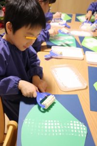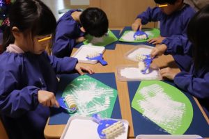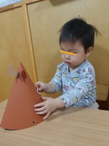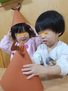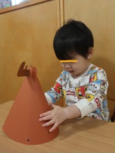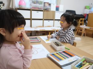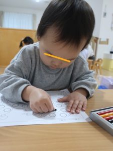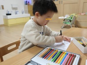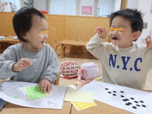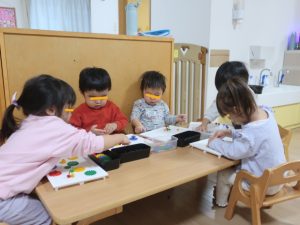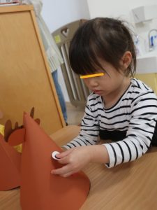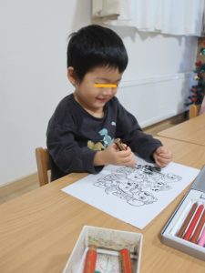 すずらん組さんは、土曜日から少しずつクリスマス会で被る帽子を作りやモザイク遊び、ちゅうりっぷ組さんは、シール貼りやぬりえをしましたよ🎵