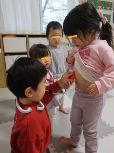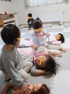 その後は、みんなで一緒にお医者さんごっこをして遊びました(*^-^*)