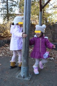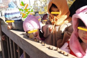 最初は怖がってしまい遠くから見ていましたが、お友だちが始めると興味を持ち、一人で登ってみたり、保育士と手をつないで足元を見ながら慎重にゆっくりゆっくりと歩く姿が可愛らしかったです(^-^)