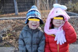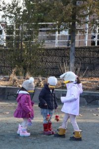 『ぺったんこーそれぺったんこー♪お餅をつきましょぺったんこー♪』とお餅つきの歌に合わせて小さな両手を使い、口を膨らませながら食べる真似をする子ども達です(^-^)