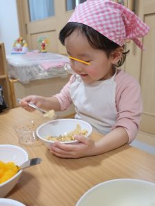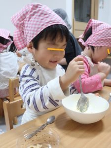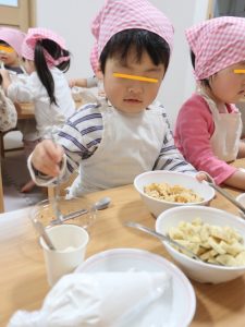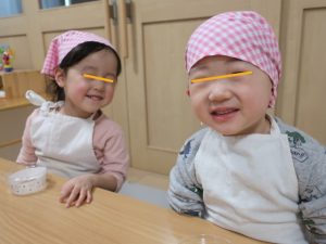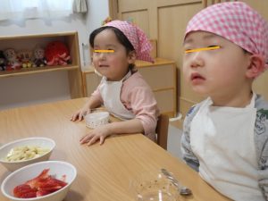 午後からは、ちゅうりっぷ組さんのクッキングが行われました(*^-^*)