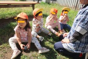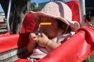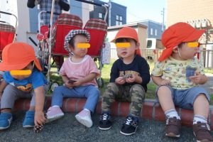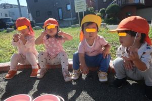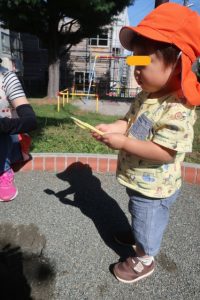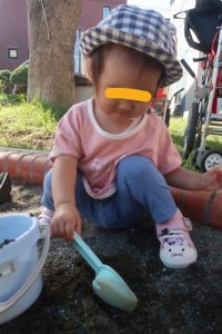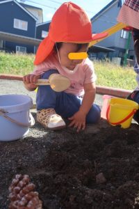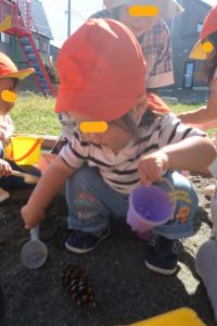公園には松ぼっくりが落ちており、握ったり土に埋めたりと遊びに取り入れていましたよ♪