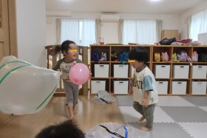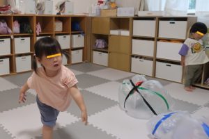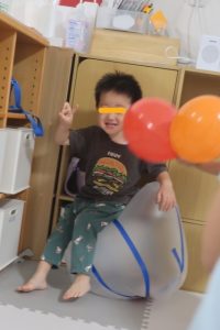大きな風船も作り、風船をパンチしたりキックしたりと激しく遊んでいました🎵