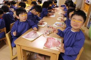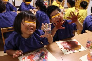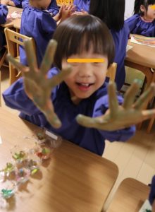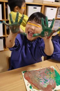 手に絵の具を付けて大はしゃぎでしたよ~