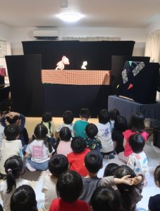人形劇だけでなく手遊びや、パネルシアターなどもあり盛りだくさんの内容に大喜びの子ども達です❤
