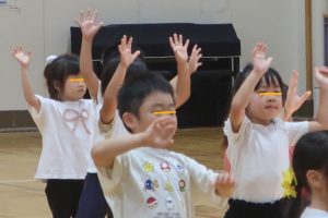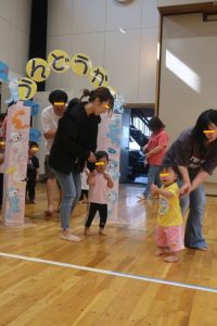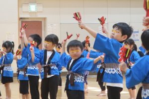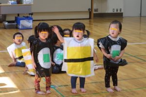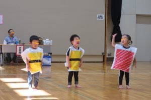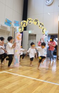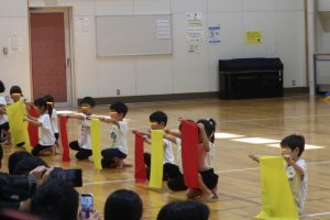 朝、会場に集まると、とっても嬉しそうにニコニコ笑顔のお友だちや、緊張しドキドキな表情のお友だち、やる気いっぱいで真剣な表情のお友だち、不安で涙してしまうお友だち…と様々でしたが無事にみんなで発表することができました♪