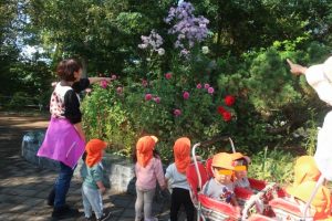 今日のすずらん・ちゅうりっぷ・すみれ・こすもす・ひまわり組さんは月寒公園に行って来ました。