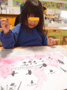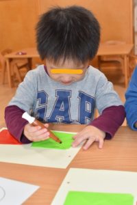 一つりんごが完成すると、折り方を思い出しながら自分の力で二つ目に挑戦するお友だちもいてビックリしました(^-^)