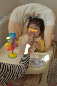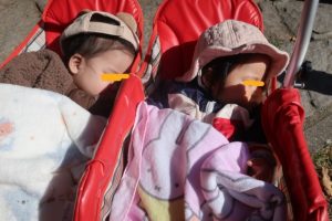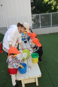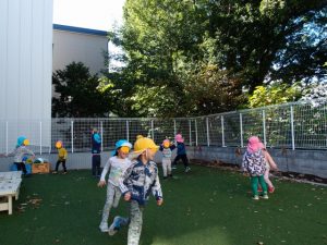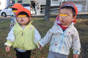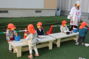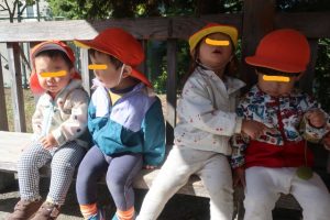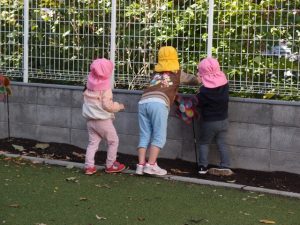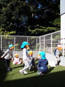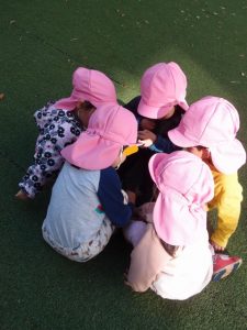 すみれ・こすもす・ひまわり組さんは、お部屋でのんびりと過ごした後に園庭に行きました。