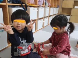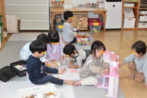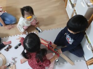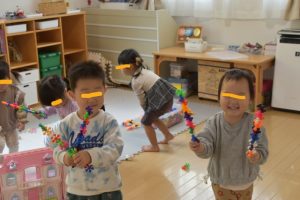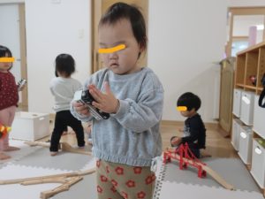 お友だちの遊びにも興味を持ち、一緒に遊ぶ姿が多く見られました(^-^)