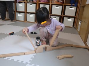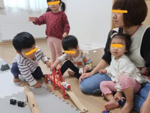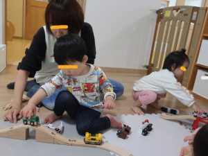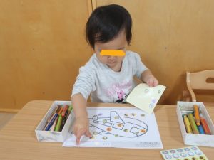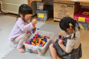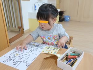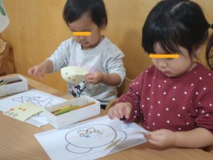 ブリオや塗り絵、シール遊びやフラワーブロックなど好きな遊びを選んで楽しみましたよ♪