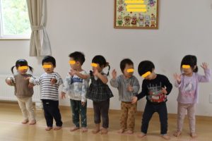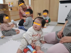 今日のもも・すずらん・ちゅうりっぷ組さんはお部屋でのんびりと過ごしました。