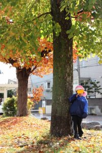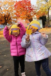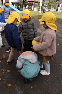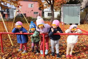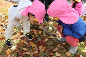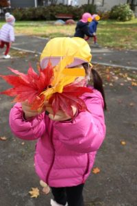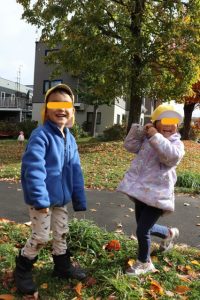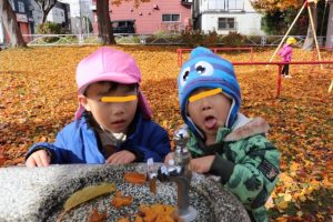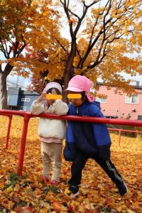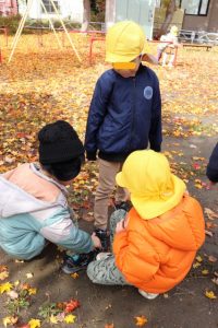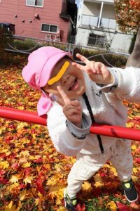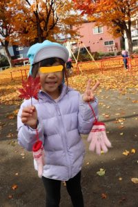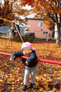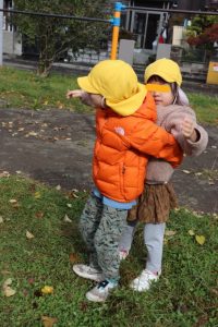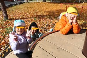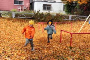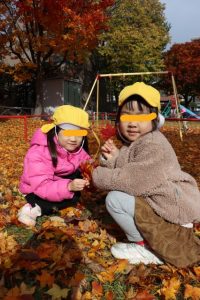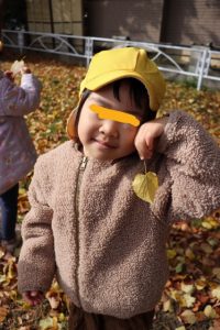 公園には色とりどりの落ち葉があり、両手いっぱいに集めたり、鬼ごっこをしたりと身体を沢山動かして遊んでいましたよ!