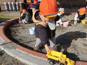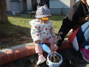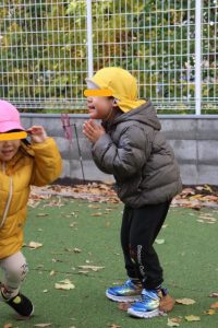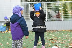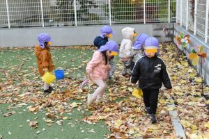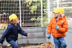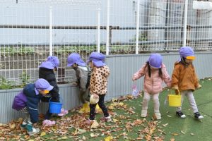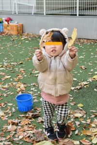 ちゅうりっぷ組さんは園庭の大きな葉っぱをバケツに集めたり、園庭のフェンスを動物園の柵に見立て「牛さーん!」「馬さーん!」と呼びながらの餌やりごっこを楽しんでいて発想が面白かったです♪