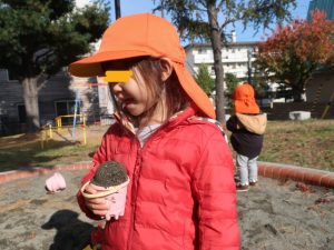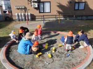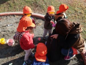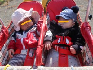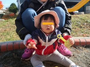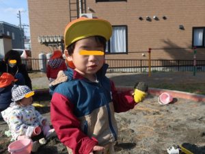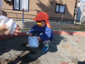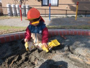 もも組さんは、暖かい日差しを浴びながらぐっすり眠って、起きてからは砂の感触を確かめじっくりと遊んでいました♪