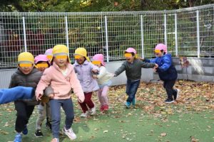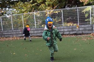 すみれ・こすもす・ひまわり組さんは、ハロウィンの衣装を着て撮影会をした後に園庭で遊びました。