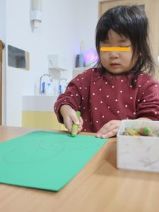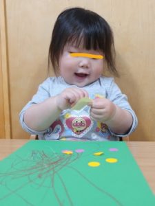 剝離紙からシールを剝がすことも上手になり、保育士の手伝いなく自分の力でできるようになりました(^-^)