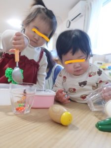 もも組さんは、お部屋で好きな遊びをじっくり取り組んだり、すずらん組さんと一緒にままごとをしました♪