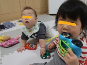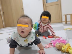 室内では、マグブロックでカメラやお人形のお家を作りごっこ遊びをしたり、お兄さん・お姉さんに遊んでもらったりとニコニコ過ごした子どもたちです(^-^)