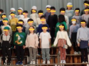 ひまわり組さんは西岡北小学校の学習発表練習を見に行ってきました。