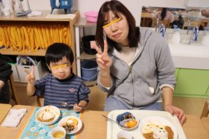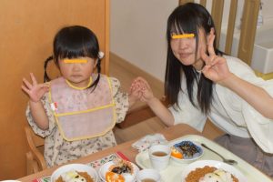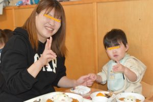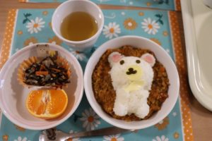 給食はくまさんのドライカレーでした💛おいしそうにたくさん食べていましたよ🍛