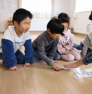 お金やカードを使いながら単語を教えてもらったり、大きいお友だちは言葉のやり取りを楽しみました🎵