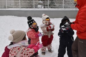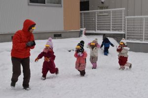 今日はしんしんと雪が降り続き園庭も真っ白になっていました(*^-^*)