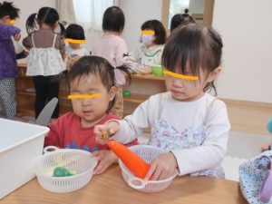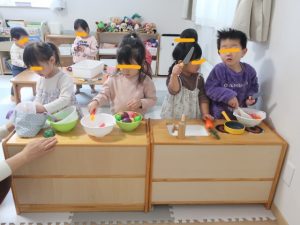 今日はももぐみ・すずらんぐみ・ちゅうりっぷぐみさんは室内でおままごとやクリスマス製作などを楽しみました(*^-^*)おままごとでは色々な食材を使い、ごちそうを沢山作ってくれましたよ🎵
