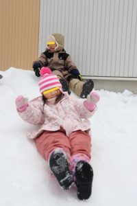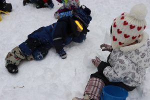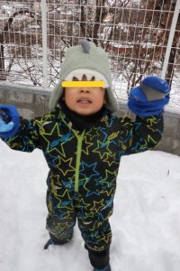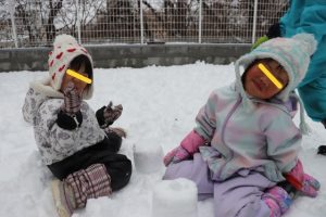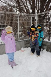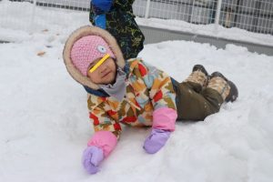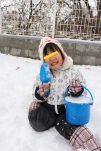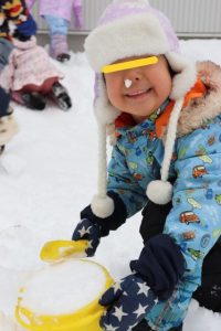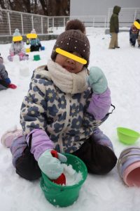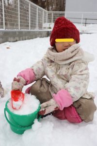 すみれ・こすもす・ひまわり組さんは園庭で雪遊びを思い切り楽しみましたよ♪