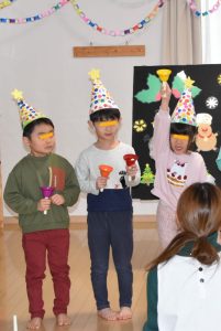 プレゼントのお礼にサンタさんに各クラスで発表を行いました☺緊張しながらもニコニコ笑顔で発表してくれましたよ✨
