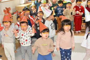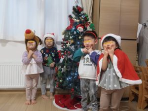 朝からかわいい恰好をしているお友だちもおり、『サンタさんくるかな~』『ドキドキするね❤』ワクワクドキドキの子ども達でした✨