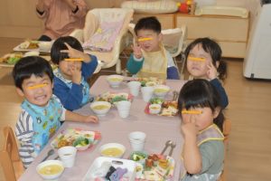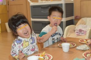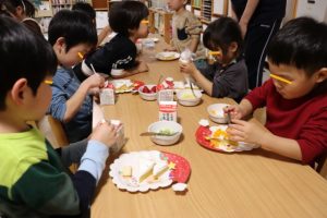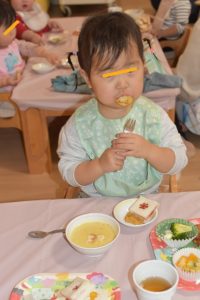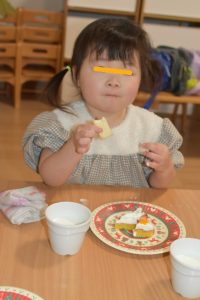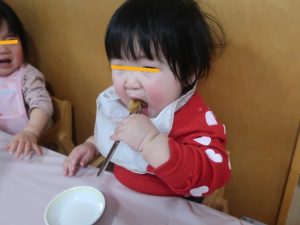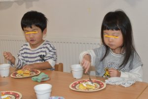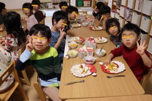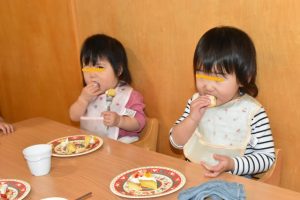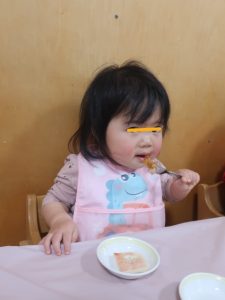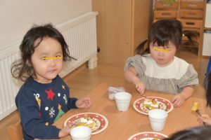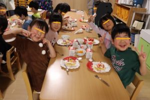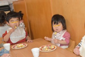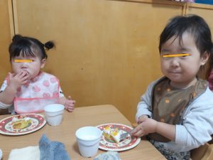 もも・すずらん・ちゅうりっぷ組さんは、ケーキを見て目をキラキラさせながら口の周りをクリームいっぱいにして食べていました(*^-^*)