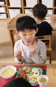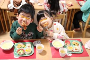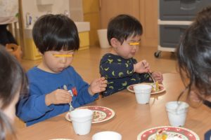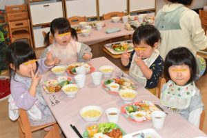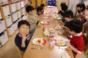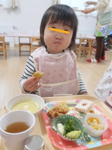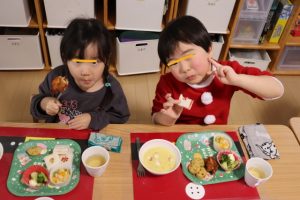クリスマスという事で特別メニュー✨おいしそうにモリモリ食べていましたよ🎵おかわりするお友だちもたくさんいました(*^^*)