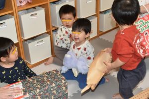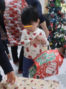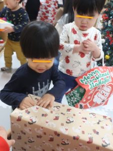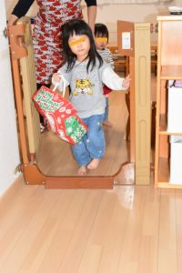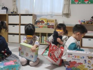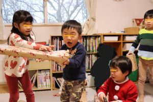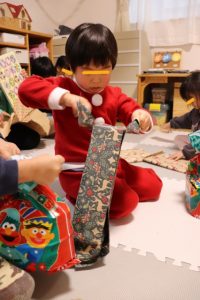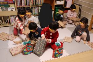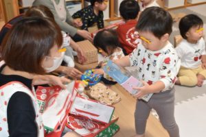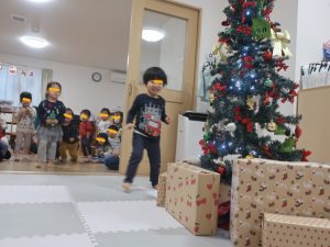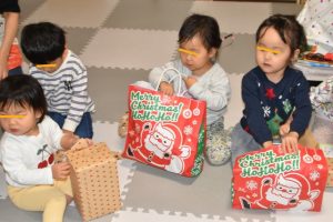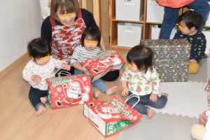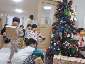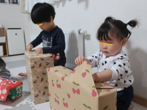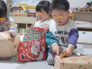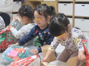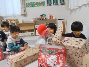 ちょっぴりドキドキしながらも『サンタさんかな~?』とお隣のお部屋を見るとたくさんのプレゼントが❤さっそく、みんなで開けて遊びましたよ(*^-^*)