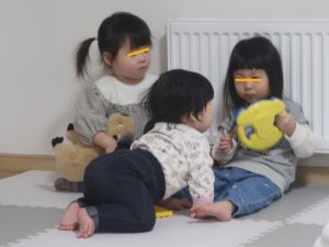 もも・すずらん・ちゅうりっぷ組さんも、遊んでいると鈴の音が…