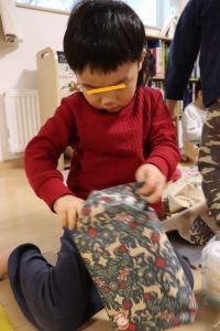 サンタさんからもらったプレゼントや三角帽子を持ち帰るのでお家でもお話し聞いてみて下さいね✨