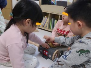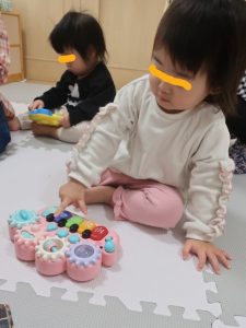 今日のもも・すずらん・ちゅうりっぷ組さんは室内で過ごしました。