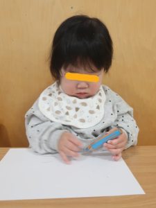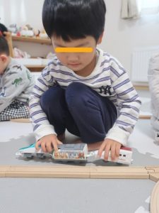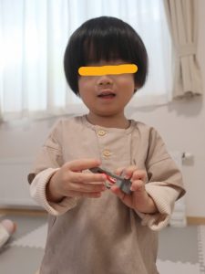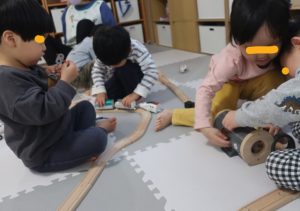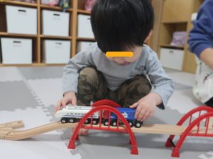 製作をしたり、長いレールをつないでのブリオ、テントの中に入ってのごっこ遊びなど好きな遊びをじっくりと楽しみましたよ♪