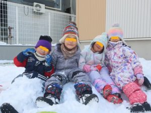 すみれ・こすもす・ひまわり組さんは、園庭で雪遊びをしました!