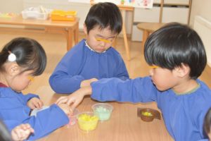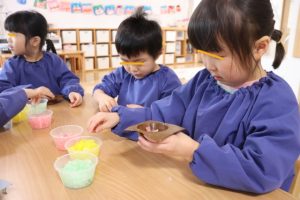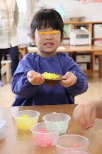 好きな色のせっけんをモリモリ入れてあっという間に完成させていました🎵
