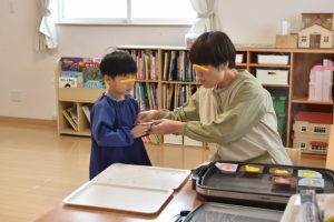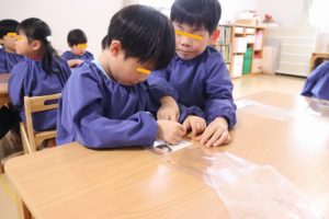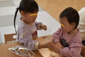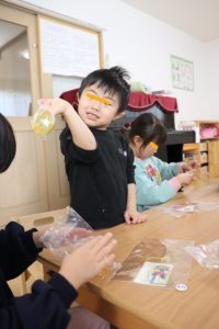 完成後はみんなでラッピングです🎁せっけんを袋に入れるのは少し難しいのですが、今日も素敵なお兄さん・お姉さんがお手伝いしてくれる姿が見られました(*^^*)