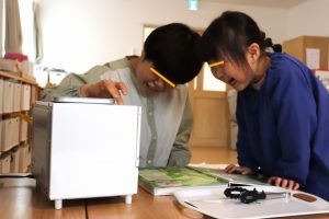 絵を描き終わったお友だちから、園長先生にトースターで焼いてもらいます。小さくなる様子に、驚いてニコニコする子や変化にちょっぴり不安そうにする子もいましたよ(^^)