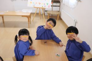 今日は青チームのお友だちです✨昨日からとっても楽しみにしており『早くやりたいね~』『楽しみだね~🎵』と始まる前から盛り上がっていました(*^-^*)