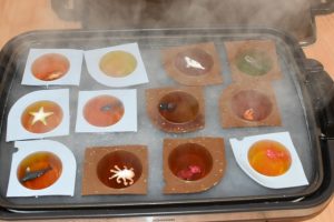 せっけんを溶かしている間は、プラ板を使ったキーホルダー作り✨何を描こうかな~と悩みながら嬉しそうにスラスラとペンを走らせていましたよ(*^-^*)