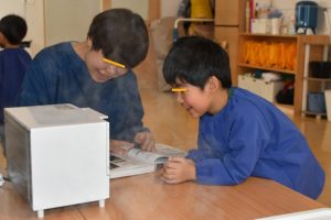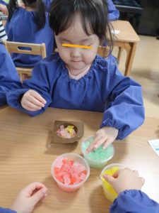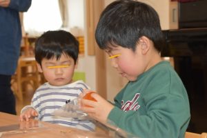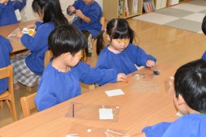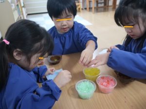 最初は、先生のお話しを聞きながらせっけんづくり♬