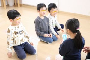 各グループに分かれて、果物のカードを使って単語を覚えたりカードを探して楽しみましたよ~