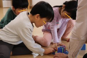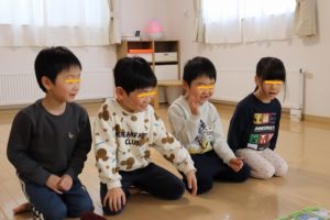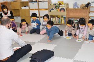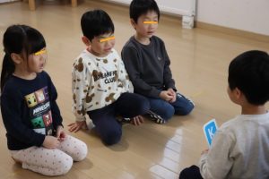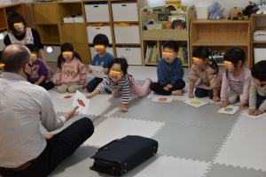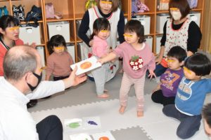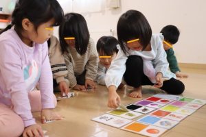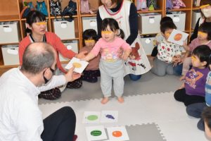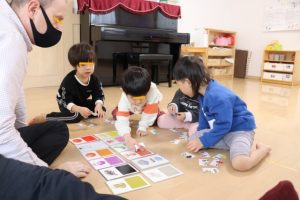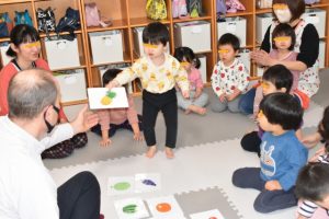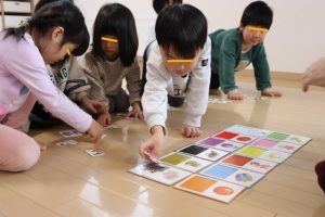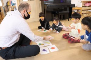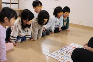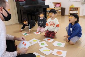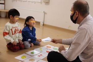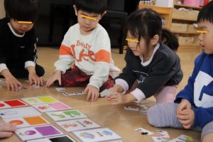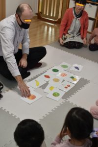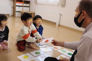 各グループに分かれて、果物のカードを使って単語を覚えたりカードを探して楽しみましたよ~