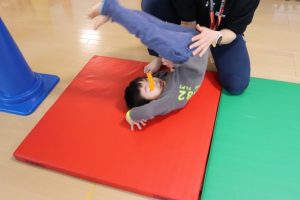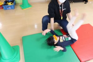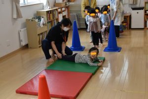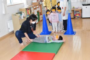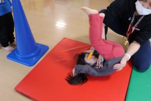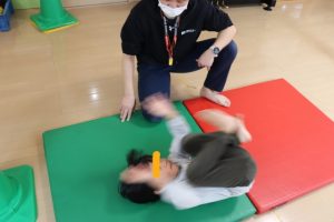 すみれ・こすもす・ひまわり組さんは全身運動をした後に、マットで前転をしましたよ♪