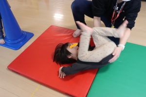 上手に回るポイントをコーチに教えてもらい、補助をしてもらいながら一人ずつ挑戦!!